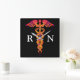 ● Caduceus design in colourful hot pink, orange and gold yellow on wall clock with "RN" in white letters This clock has the grey time