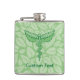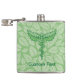 The flask itself is fine. It’s a cheap flask, obviously bought in bulk, however am prepared to overlook that. Given that it is a personalized item, I would have liked to have seen gift boxing instead of the generic packaging. Terrible printing, and/or quality. It’s a cheap, tacky vinyl. It is not cut straight and is also applied in a way that it is overhanging the bottom, causing the glue to catch on items and it will eventually roll and tear, damaging the wrap.