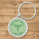 Single snake caduceus with mint leaves on light green seamless background. Two custom text fields on circle.