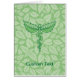 Single snake caduceus with mint leaves on light green seamless background. Custom text.