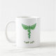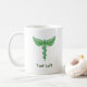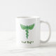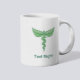 Single snake caduceus with mint leaves. Custom text on both sides.