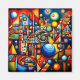 A.I. created meaningless geometrical celestial abstract composition of planets, stars, lines, shapes and colors in an arrangement which pleased the senses of the artist.