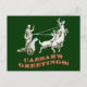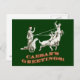 A parody of the traditional "Seasons Greetings" holiday message. Image of Julius Caesar in Santa hat and throwing up a peace sign. The chariot is pulled by a group of reindeer launching themselves into the sky. Text reads: "Caesar's Greetings!".