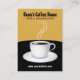 © Sunny Mars Designs. White Coffee Cup Black and Beige Cafe Business Cards – These custom trendy, stylish vertical large or 'chubby' professional coffee shop or cafe business cards feature an illustration of a steaming cup of black coffee, in a white porcelain coffee cup or coffee mug, on a black round table, against a beige background. Personalise these cards by adding your own text to them..