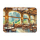 This anime-style watercolor painting portrays a cosy cafe in Meteora, alive with the charm of everyday life. The interior features warm wooden tables and chairs, with sunlight streaming in through large windows. These windows frame an enchanting view of Meteora's iconic rock formations and ancient monasteries, depicted in delicate watercolor strokes. Patrons are shown enjoying coffee, tea, and pastries, adding life and warmth to the tranquil scene. The blend of earthy tones, soft pastels, and gentle blues gives the painting a dreamy, serene atmosphere, enhanced by the fluid and expressive nature of the watercolor medium.