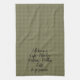 Funny, country style towel reads I'll have a Cafe-Mocha-Valium-Vodka Latte to go please.  The towel is a light tan with a red and medium tan checked border.