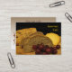 This cafe or restaurant business care displays an enticing display of freshly baked rye bread, yellow cheese and red purple grapes on a rustic wooden cutting board. The back has a simple floral design. All text can be customised to suit your individual business needs.