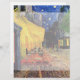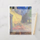 Cafe Terrace on the Place du Forum by Vincent van Gogh is a vintage fine art post impressionism architectural cityscape painting. An exterior view of a restaurant with tables, chairs, waiters, and people dining. A beautiful night with stars in the sky in Arles, France.