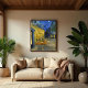 This painting of a colourful outdoor view is a picturesque work, the vision of a relaxed spectator who enjoys the charm of his surrounding without any concern. It recalls Van Gogh's mood when he wrote that "the night is more alive and more richly coloured than the day."