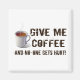 "Give me Coffee and no-one gets hurt!" This and the picture of a steaming hot cup of milky coffee will tell even the dumbest person at home or in your office that you are in need of a shot of caffein! A funny saying for coffee addicts in distressed font