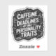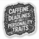 This bold and playful design features the phrase “Caffeine and Deadlines: My Only Personality Traits,” hand-lettered in thick, dynamic typography. Surrounding the quote are whimsical doodles: a steaming coffee cup, an open laptop, an overflowing calendar, and tiny sparkles – perfectly capturing student life. With its high-contrast black background and eye-catching layout, this design is ideal for students, grad school warriors, and anyone who lives on coffee and looming due dates.