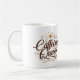 Caffeine Queen" is an elegant and sophisticated design featuring a flowing script font in deep espresso, crowned with a delicate gold icon above the text. The design is adorned with subtle swirls and steam-like curls in warm mocha and cream tones, creating a sense of graceful movement. Set against a soft blush pink gradient that transitions to light beige, this design exudes a feminine and polished aesthetic. It’s the perfect choice for the modern, empowered woman who enjoys her coffee with a touch of luxury and style.