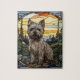 Puzzle featuring a Cairn Terrier dog done in a stained glass window mode. Perfect for all dog lovers.