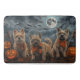 Unleash the spooky spirit with this eerie Halloween design featuring a pack of dogs under a dark, moonlit sky, surrounded by flying bats and glowing pumpkins. Perfect for those who love a touch of frightful fun with their furry friends!