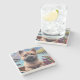 The coasters are gorgeous, a quality feel and heavy weight. They look like a precious archeological find. A rustic stone juxtaposed with a modern floral black and white print. I like the way the print goes slightly imperfect on the cut stone edges giving them a kind-of natural beauty.