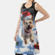 Cairn Terrier Running in Snow with Christmas Hat Apron
