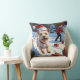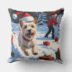 Cairn Terrier Running in Snow with Christmas Hat Cushion