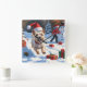 Cairn Terrier Running in Snow with Christmas Hat Square Wall Clock