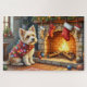 Cairn Terrier Sitting Fireplace Christmas Lights Jigsaw Puzzle