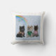 Three Cairn Terriers in their rain slickers, singing in the rain and watching the rainbow. Great feel good design!
