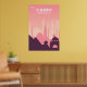 Add some flair to your decor with this pink vintage travel poster featuring a retro illustration of the skyline in Cairo, Egypt, including the Egyptian pyramids!