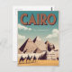 A captivating and nostalgic depiction of Cairo, Egypt, showcasing its rich history and iconic landmarks. The design captures the awe-inspiring Pyramids of Giza, the Great Sphinx, and the bustling streets of the city, framed by the Nile River. Rendered in a vintage style, the artwork evokes the timeless grandeur and vibrant atmosphere of Cairo, inviting viewers to explore its ancient wonders and dynamic urban life.