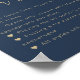 This dance floor rules sign template features an edgy handwritten font and modern minimalist design with a navy blue and gold colour combination. *NOTE* : HEARTS WILL DOWNLOAD SMALLER THAN THEY APPEAR HERE! Use this template to edit the font colour, and background colour to match your event needs. Pair with additional items from the CAITLIN Collection for a cohesive look.