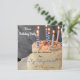 A birthday party invitation featuring a yummy cake with candles a glow. Customise with all of your birthday party information as desired.