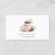 A watercolor pink and white dessert with berries are the centerpiece of this handsome simple business card for a baker, pastry chef, dessert caterer. Simple elegance and a pretty script type. For a baker crafting artisanal desserts that delight the senses and elevate every occasion.