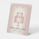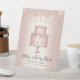 Present your best self to your clients, with this elegant, sophisticated, simple, and modern custom business name pedestal sign. A sparkly, rose gold 2 layer cake, script handwritten typography and glitter drips overlay a faux metallic rose gold ombre background. Personalise with your full name/business and other contact info. Available in 4 sizes: 4”x6”, 6”x8”, 8”x10”, and 10”x12”. Makes a chic, and stylish statement that will smartly display your business in a professional manner.