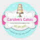 © 2023 Socialite Designs Inc. Colourful and elegant cake bakery box seals with wedding cake, damask background and polka-dot ribbon design.