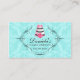 Cake Bakery Damask Aqua Pink Business Card