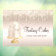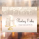 Elegant and chic window cling sign for bakeries, wedding cake designers and specialists, pastry chefs and event caterers. Champagne gold faux glitter drips down an ombre gold background with an illustration of a beautiful ornate wedding cake with coordinating gold glitter icing. Personalise with your business name in a stylish script.