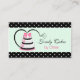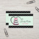 © 2016 Socialite Designs. Our original cake designer business card incorporates a partial heart, calligraphy swirl, elegant cake with a black and white polka-dot border. The striped mint green background makes the cake design stand out. You can customise the font(s) to suit you. Let your baking business stand out of the ordinary with these lovely business cards.