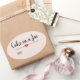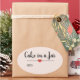 Modern oval "cake in a jar" sticker with a black script font on a blush pink background embellished by a cute red heart. Customise text.