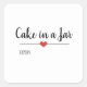 Modern "cake in a jar" sticker with a black script font on a white background embellished by a cute red heart. Customise text.