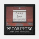 Cake love chocolate graffiti on a white and red brick wall. Priorities are cake love and chocolate! Motivational poster-style square magnet.