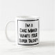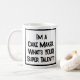 Funny slogan on a mug that says "I'm a Cake Maker. what's YOUR super talent?". Mug for a Cake Maker. Black and white bold text.
