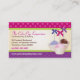 Cake pops are the latest fun treat, so it's important that a business dealing in baked goods and other delicious things stand out from the crowd. This business card features three yummy-looking cake pops tied with ribbons. The background is a bright polka-dotted fuchsia and a diamond patterned purple. The business name, description, address and main phone contact stand out in its own frame with a web address printing below. The reverse reveals the same background with the rest of the business information and tagline or a special message about the business. Available with matching products.