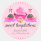 © 2021 Socialite Designs. Our elegant bakery box seals / stickers has a colourful cupcake and cake pop design with a damask background, swirl and floral elements. A wonderful, standout design to use as seals on bakery boxes to promote your baking business.