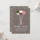 Adorable and fun birthday party invitations feature a sweet and whimsical cake pops bouquet vector illustration on a rainbow sprinkles background.
