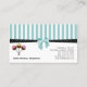 © 2011 Socialite Designs. Our whimsical cake pops bakery business card design has three cake pops tied with a bow, a black ribbon and striped background. A perfect business card for a bakery business or event catering business. Personalise this cake pops bakery business card with your information. Need HELP with customising? Please do not hesitate to contact me with your requirements.