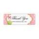 © 2014 Socialite Designs. Whimsical green cake pop with pink bow design thank you labels. The background has a pink polka-dot pattern. Perfect to attach to wrapped cake pops.