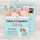 An attractive double-sided flyer for bakeries that bakes cupcakes, cakes, desserts and other baked goods. It has a cupcake print background in blue, and allows you to edit the images with your own baked goods (or use the ones on the flyer). Editable text includes your phone number, email, website, and on the back your bakery menu and list of flavours.