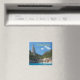 Souvenir photo magnet of the big climbing rock at Cala Goloritze beach in the Gulf of Orosei on the island Sardinia in the Mediterranean Sea, Italy with the text: 'Sardinia'.
