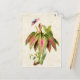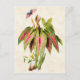 Postcard with a digitally cleaned and enhanced vintage image of a green and pink caladium plant with a butterfly on a parchment background. Illustrated by Etienne Denisse for Flore d'Amerique, published in Paris, 1843.