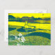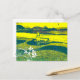 A Copacabana yellow and blue design having the SugarLoaf mountain as background, with a bird flying and some white leaves. Zazzle custom postcards are the best way to send a special message