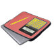 This unusual and quirky Laptop Case features a calculator with yellow keys and red lettering and a yellow pen. The background and nameplate text can be changed to suit your own requirements.