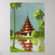 Restored and digitally enhanced vintage travel poster showing Burmese pagoda in Eden Gardens. Imperfections removed. Colours corrected. Image courtesy of Library of Congress.