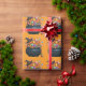 Caldron Of Giggle & Gummies Wrapping Paper. A cheerful caldron beams, stuffed with candies exploding like confetti, proudly sporting a witch hat. Its broomstick buddy leans close, clearly waiting for sweet-fueled liftoff, Halloween’s happiest sugar-powered witch-mobile!